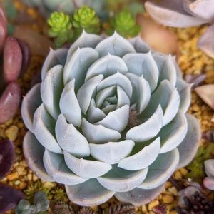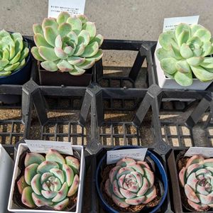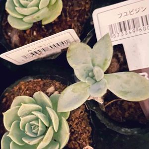 おはようございます😃 先日DAISOで、とっても綺麗な子を見つけました🥰 植え替えていて下葉が2つポロっと取れてしまって、ちょっとバランスが悪くなってしまいました😭 やっぱり名札には、エケベリアだけ… またまた、謎ベリアです😭 お名前教えてもらえますか?? お願いします🥺