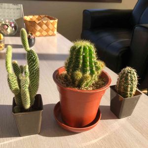 百均サボテン🌵 真ん中の子は百均の植木鉢?が 窮屈になって植え替えたのですが… またキュウクツ…😅 子だくさんだこと。 他の子も もう少しサイズの大きいものに替えてあげないと💦