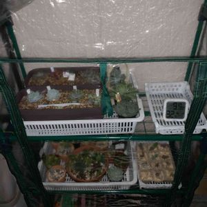 昨日の夜撮りです。ベランダ組には温室を用意致しました。温湿度計も用意してます。チャリカゴ組もいずれはこちらに移行する予定です。せっかくの棚だし。 さっき様子を見に行ったのに、何故か写真を撮り忘れました。また日を改めて撮り直したいところです。中の子達の詳細はまたいずれ、みどりのまとめにでもしようかしら。実はおらいさん苗などが仲間入りしてす。 こんな感じで、寒さが厳しくなってきたら不織布やプチプチを巻いてやり過ごそうと思います。