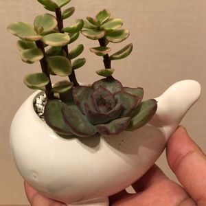100円ショップの多肉ちゃんを100円ショップのクジラさんに寄せ植え♡♡ 百均の子でも、元気で嬉しい(◍´꒳`)b