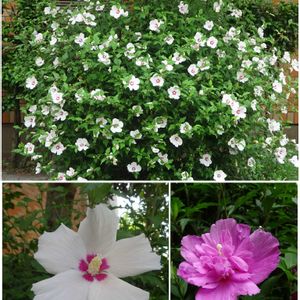 白い水曜日♡ に参加します 白いムクゲ 今年は見事に咲きました。 右下は八重のムクゲ 我がハイツで 7月7日