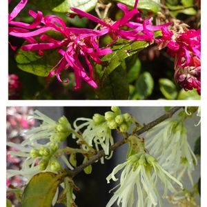 おはようございます😃 トキワマンサク(常盤満作 万作) トキワマンンサク科 トキワマンサク属 常緑広葉樹 低木~小高木 上段 ベニバナトキワマンサク 下段 トキワマンサク 基本種は緑の葉に白い花 散歩道で 2020年3月26日 メモ 落葉樹であるマンサク対し、一年中葉をつけているため常盤が付く 花弁は4枚 長さ2cmほどのひも状