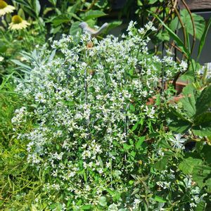 こんばんは♡ ʕ•ﻌ•ʔฅ´- ✨ 10月の寒暖差アレルギー➕イネ科花粉➕∑(°д゜)ダニィ⁉アレルギー? ➕シツコイ(( ≖_≖))風邪のため 痰がらみの咳は( ・᷄ὢ・᷅ )マダ 朝晩残るものの…随分らくになったので マスク😷し 久しぶりに枯れ果てた✻*˸ꕤ*˸*⋆。✻*˸ꕤ*˸*⋆。✻*˸ꕤ*˸*⋆。を撤去、株分け などの庭いじりε=( ̄。 ̄;)フゥ💦 今月.2回目20日ぶりの登校🎒です 𓏲(ᐡ . .)"ペコリ 特盛になったダイアモンドスノーに 色付き始めた金魚草が隠れん坊🤍💗 ②暴れん坊の挿し芽も大株に🤍🌿 ③まだ元気な桔梗💜に白い子も🤍😍 ④8月に✂️後、再び満開の アゲラタム💜💙🌿 ⑤日陰で挿し木したままの ヘデラに白い葉っぱ🤍🌿 清楚な白花♡ 素敵な水曜日 白い水曜日♡ 白い貴婦人✨️ 白い妖精 白い恋人達 などの🏷𓈒に サンカ∩(๑⃙⃘'ᗜ'๑⃙⃘)∩シマス