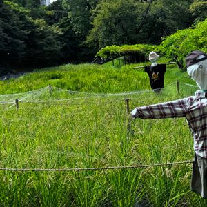 今日のお花 イネ 〈稲穂〉 私の生活範囲内で稲田は皆無 生地の愛知県では水田に囲まれて育ちましたが、、 今年は,小石川後楽園で案山子に守られタワワに実った稲🌾を見ることができました(09/22) 残念ながらお花の時期は過ぎていました 豊作‼️ 新米が出ても価格が下がりませんね。育ち盛りのお子さんのいるご家庭とは違い、1合を2回に分けて食べる老夫婦には、申し訳ないですが深刻さに欠けていると思います😔