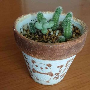 ②投稿目🙇 早朝、相方が バイク🏍️、車🚘系のガレッジセールに行くと 言うので、 なぜか?多肉植物屋さん💦が 不定期に出店している イベントなので、 📱で遠隔指定☝️で 狩って来て貰いました☺️✌️ オジサンの趣味でハルオチア系が多いお店ですが お値段が 破格👛。 実生で育てたりしてるみたいで 庶民的なブース内です🙇 サボテン🌵の右側の 名前わかる方いますか?? 教えて~🙇。 テリーマンさんに 聖王丸 (ペンタカンサ)と 名前教えて頂きました🙇🎶
