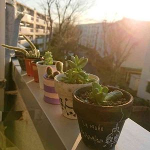 おはようございます😊✋ 今朝、この時期にしては珍しくピーかン☀️です。 私が食べた柑橘類の小夏の種が腐らず堆肥から芽を出したので、鉢上げし、室内にお引っ越しです。 左 陶芸家さんが作ったぐい呑に底に穴を開けてもらったものを鉢にしてます。 右 100均の植物繊維から出来た鉢で、不要なったら砕いて土に埋めると分解されるものです。