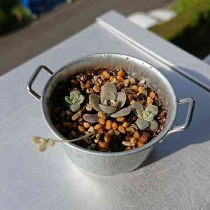 猛暑過ぎる😅💦 koaraさんに🎁して頂いた リメ鉢に ダルマ秋麗の葉挿し 始めました。😀 成長記録です。 水分補給しましょ~🚰