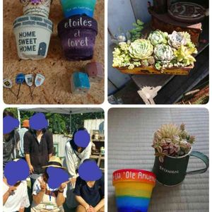 GGMでの戦利品です😆🎵🎵 リメ鉢は、欲しかった物が入手✋出来 ビックリ👀⚡しちゃいました。 右下の レガロさん💦の寄せ植えと、ミニリタさん💦のリメ鉢は 昨日ご一緒した 方達からの 誕生日🎂🎁プレゼントとして 買って頂いた物です😭💧 何だか日頃 私は何にも出来てない事に 反省しました🙇💦 これからも、宜しくお願い致します🙇。