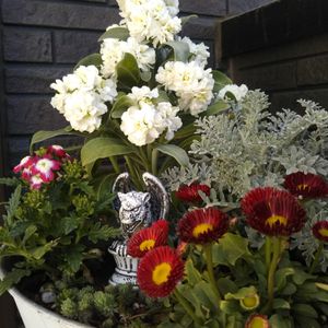 🌼 寄せ植え 🌼 白のストックが満開です✨ 手前のデージーは寒波で葉がしおれましたが、今は復活❗️元気に咲いてくれてます🎵