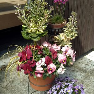 こんにちは。今日の天気は晴れ☀️ 真ん中の寄せ植えは、去年の12月7日に投稿した寄せ植えです📷️ 葉牡丹がツリーのようになり、パンジーはもりもり咲いてます✨p(^-^)q 後ろのアルメリアは、去年の夏に蒸れて無くなったのでリベンジ💪増やしたいな❤️