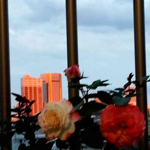 夕日がビルに当たってキレイだったのでミニパラと一緒にパチリ🤳💓🤭