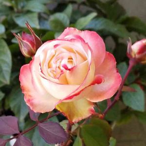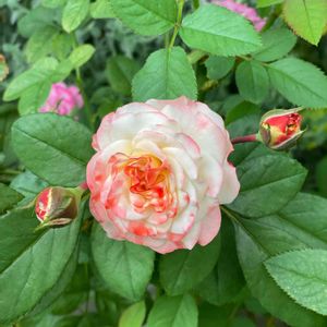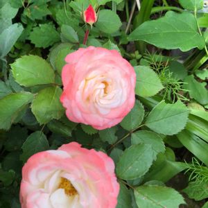細々と😅長年頑張ってくれてる庭のバラたち🎶💗🧡💗💖💖 みんな息子の植えたものです🌿 追肥に応えてくれました👏👏👏 アップルブロッサム!って合ってたかしら🤔 🤍(アイボリー??)▷▶︎▷▶︎💗に色付きます。