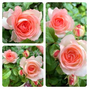 🌹は乾燥には強いですね! ⬅️一向に大きくはならないけど、息子が植えて、長ー〜く庭に居る ホワイトピーチオベーション🍑 あの頃、コーヒーオベーション☕️とかもあったなぁ🤭 枯れたけど! ↗️さんご印の💖ダブルノックアウト🌿🌸元気に咲いてますよ〜🤗 ➡️アイスバーグ(つるじゃ無い方)手入れ悪いけど、テラスで開花🤍 ↘️☔️☔️☔️で真っ白だったスパニッシュビューティーが🌤☀️でこんな色になりました👀🌸🌸