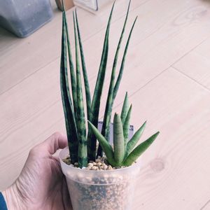 サンセベリア3つを、2つに植え替え 寄せ植え初めてだけど、うまくいくといいな🌱 透明の鉢、最近初めて買ったけどどうなんだろう。
