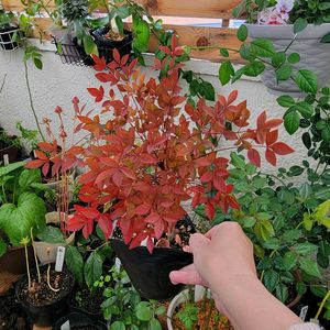 母にもらった南天の実を植えたら育ちました⸜(*ˊᗜˋ*)⸝紅葉が綺麗✨ 鬼門に柊、裏鬼門に南天✨ 我が家の柊(斑入り)にも花が咲きました