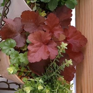ヒューケラ達の寄せ植えを、並べてみました😊 冬は色が少なくなる庭に、彩りを求めて、母からもらったヒューケラさんをベランダガーデンの中心に配置✨
