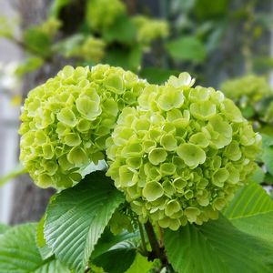 ライムグリーンだった大手毬がピュアホワイトに変身していました。