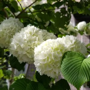 大手毬 (オオデマリ) レンプクソウ科 大手毬は 春に小花が集まった手毬状の集合花を咲かせる小低木で 花色は咲き始めのライムグリーンから 白花へと変化します。 この色が とても瑞々しくて好きです。