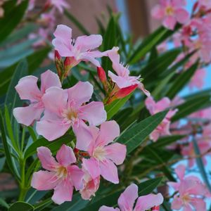 夾竹桃 (キョウチクトウ) 今日のお花 暑くなるに連れて 花数が増えてきて 真夏のピンク花が 賑やかになっています。
