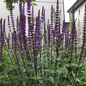サルビアネモローサカラドンナ 2回目の春を迎えてだいぶ大株に成長しました こうなってくると花壇の中の植物たちの高さバランスが…… 秋には色々配置換えが必要かなあ💦
