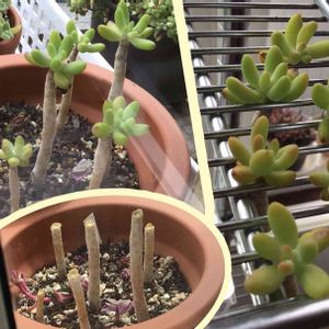 徒長していた唐印さんをGSの方がやっていたのでチョンぱ✂️してみました( ̄▽ ̄)ゞ 本当はもう少し温かい日にしたかったのですがいきなり気温が下がったので雨が降っていますがカットしました(^^;))) 土が水分を溜めやすいようなので本体も植え替え✨🌱✨ しばらくは寒いようだけど頑張ってね😆❤️