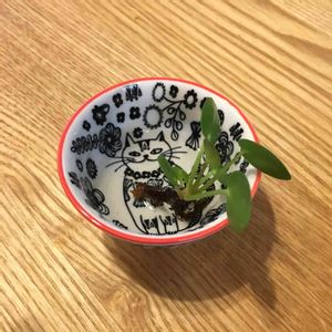 小さい方も発根していました。このまま水栽培にしてみようかなあ。セリアの器、なかなかカワイイ😊