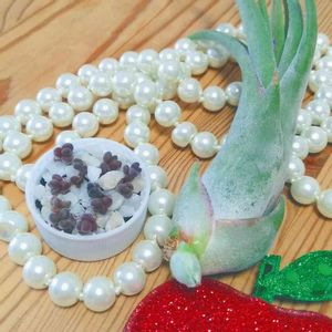 ロッティさん発根してね((o(。・ω・。)o)) 鉢はプリンの空き容器と化粧水の蓋…飾りのパールは100均です