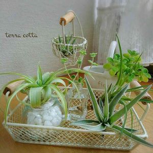 窓辺の子たち…🌿 アルミトレーなどに入れてあったのですが、日が当たって熱を持ちそうなので、ワイヤートレーにチェンジ