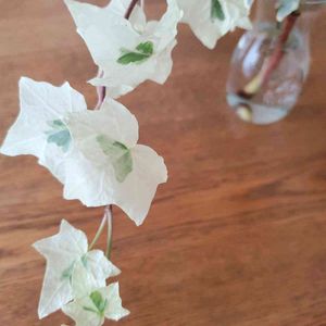 1本の白いアイビー 根っこが出ないかな~って水に差しています(*^-^)