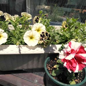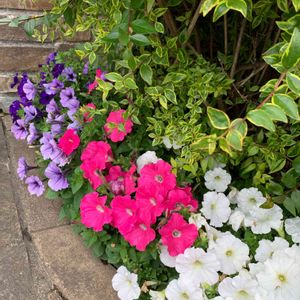 ペチュニアの勢いが止まりません。 一年前に種植えして咲かずに越冬したペチュニアが心配になるほど咲き乱れています♪