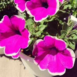 ペチュニア 太陽大好き! 夫の手作りラックに飾りました。