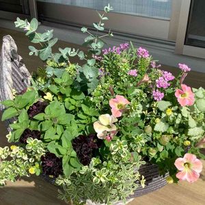 4月のガーデニング教室で作った寄せ植えです。 今回は先生がチョイスしたセットで作るクラスに参加しました。 普段、自分では選ばないような黒のペチュニアがシックでステキです。ピンクのペチュニアも色の変化がグラデーションになっていてカワイイです。