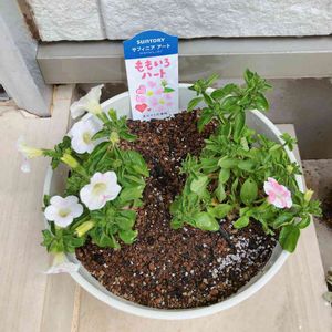 昨日、一目惚れでお迎えした 栄養系ペチュニア シャトー🌿 を寄せ植えにしました🤗 アンゲロニアビック フロックス2色 朝一でHCへ走りましたが、まあまあの人でした😅 小さいポットのバラ苗💜買おうか迷って、後からもう1回戻ったらおじいちゃん👴のカゴに💦 もう一株ありましたが、前に見た株の方が良かったので諦めました😂 連投失礼しました🙏