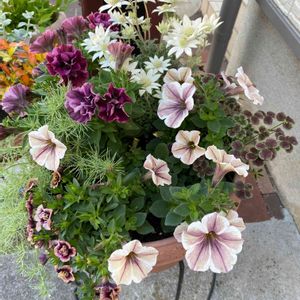 先月作った寄せ植えのペチュニアが いい感じにボリュームが出てきました✨