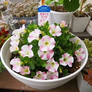 こんばんゎ〜* サントリー サフィニアアート ももいろハート💗 3月頃に小さな苗を寄せてからかれこれ2ヶ月近くになりました😊 これからまだまだ咲く気配が…… 蕾が沢山控えてます(ღ˘͈︶˘͈ღ) 記録用としてアップさせて頂きます (*ᴗ͈ˬᴗ͈)⁾⁾⁾