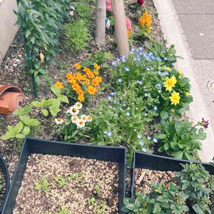ネモフィラが思ったよりも広がって ダリアが埋もれてる😭 梅雨入りで花壇の花達が無事 梅雨を乗り越えられることを 祈るばかり🥲