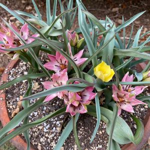 原種チューリップが咲きました。房咲きっぽくて、草丈が短くて、花びらが尖っていて、キュートな感じです。