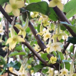 〈 今日の庭の花たち 〉 ➡️⚫︎ビックリグミ(大王グミ) グミ科 落葉性 赤くて大きな実をつける品種です 観賞用にも食用としても利用価値の 高いグミです ↖️⚫︎ムベ(郁子) アケビ科 つる性 常緑性 関東地方以西の地域庭に分布 アケビに似た果実は紫色に熟し 食用にもなります 花は葉の脇から伸びた長い花柄に 房状に咲きます ↙️⚫︎ブルーベリー ツツジ科 低木果樹 育て易く場所をとらす 手軽に 楽しめます 実はジャムなどに使えます❣️ ◎曇り空ですが 庭木たちは元気に花を咲かせています どれも食用になります ブルーベリーは 長女が引っ越しの時 置いて行ったものです 実が付くのが楽しみです♪
