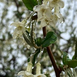昨日散歩道で❣️ びっくりグミの花が 咲いて来ました^o^ 雨に濡れて☔️重たげね🤔 今年は 頂きたい(^ω^) 赤い実^o^🍒