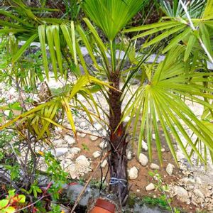 シルバーリーフが美しい 耐寒ヤシ🌴 チャメロプス フリミス セリフェラ 長い💦 コンパクトサイズで 狭いわが家にピッタリです。