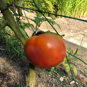 トマトそのままから、こんな大きなトマトができました。 間引くのが勿体なくて、沢山の芽を育てたので、トマトも沢山実りました。 これは第一号! 本当に育つのですね。 嬉しすぎます❤️