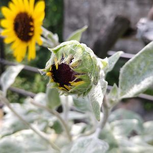 お疲れ様でした 『銀葉向日葵』 『白妙向日葵』 少しずつ開き始めた もふもふもけもけの塊✨ 🏷️『金曜日の蕾たち』 .