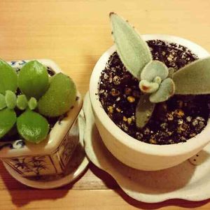 ぷっくぷくの熊童子さんと、今にも飛び立ちそうな月兎耳さん。