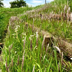 昨日、買い物帰りに渡った川の土手に、チガヤがいっぱい有りました。