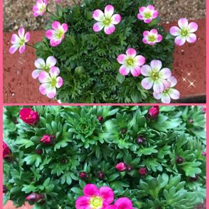 1月半ばにお迎えした雲間草🌸*・ 最近蕾が出来ていましたが、今日お花が開きました⸜(⍥)⸝♡ お迎えした時より、かなりピンクが濃くなりましたが どちらも可愛いですね(*˘︶˘*).。.:*♡