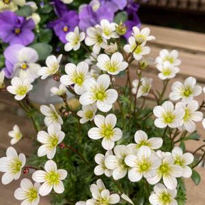 西洋雲間草 ピーターパン 球根植物が目を引く時期ですが宿根草達も目覚めはじめています。これはお花自体は1-2cmくらいの小さなものですがこんもりとした葉っぱの上に乗っかるように咲き揃います。