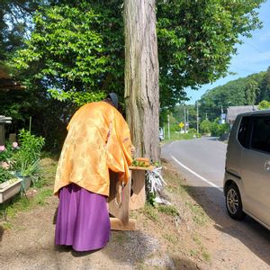 道路沿いのサワラの木が、枯れてしまい18日、お祓いをしてもらい22日、伐採しました 大型重機に職人さんが、三人🪚電信柱を超える高さ 周囲1m80cm 中心が穴、少し整えて🌸🌸鉢を入れました スッキリ、さっぱりで、なんか物足りなくなりました😅