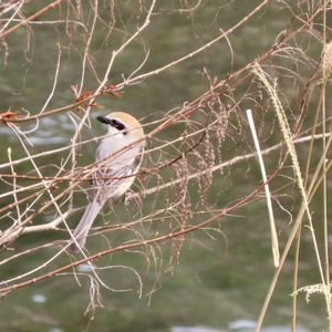 百舌鳥②〜ペア 土手の桜並木の川の中 百舌鳥のプロポーズの真っ最中♡ ☆1 ☆3 ☆5 プロポーズの真っ最中 雌の反応が微妙でした ☆2 川に垂れる桜の枝 川沿いの枯れ薄の中、百舌鳥が 見つかるかなぁ〜( ≧ᗜ≦)੭ 2025.4.5 南小国