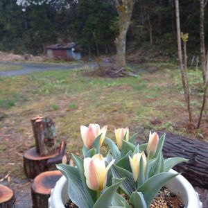 原種チューリップ🌷グレーギープレジール 日中開いた姿は綺麗でないので 夕方閉じたお花を。