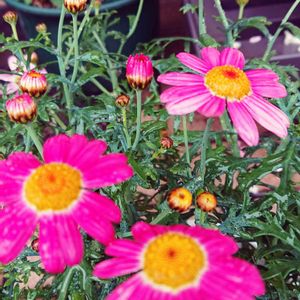 ①、②2月の初めに購入した、PWのマーガレット(ストロベリーホイップ)の花が、たくさん咲いて来ました✌️ ストロベリーホイップは、濃いピンク→ピンク→白へと変化していきます🎶 花びらも必ず奇数なので、「好き」「嫌い」の花占いも必ず「好き💕」で終わるし、花びらも落ちないので、受験生にとって縁起もいいですね😉🎶 花の色の濃いさも置く場所によって、変えられるのもいいですよね💕